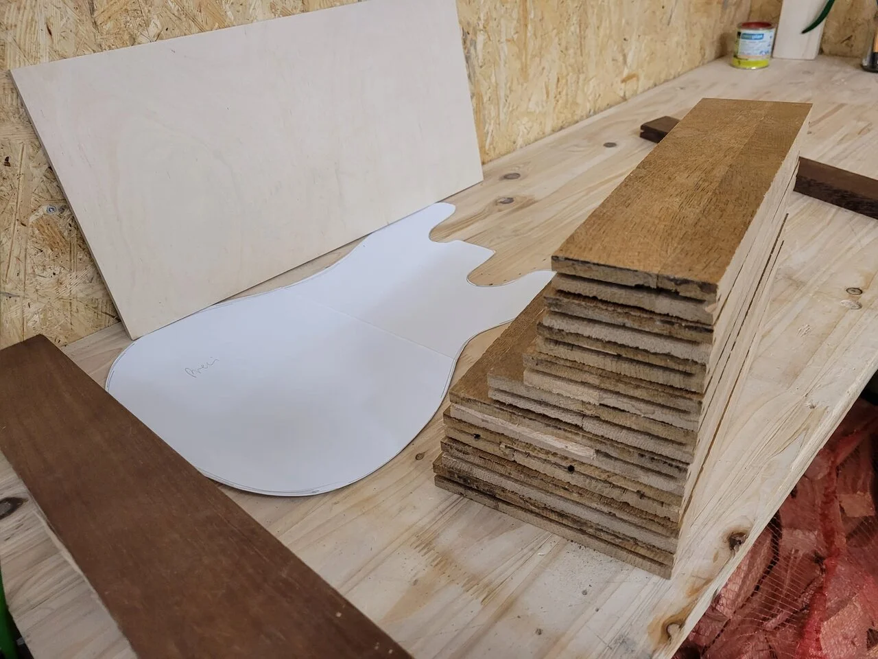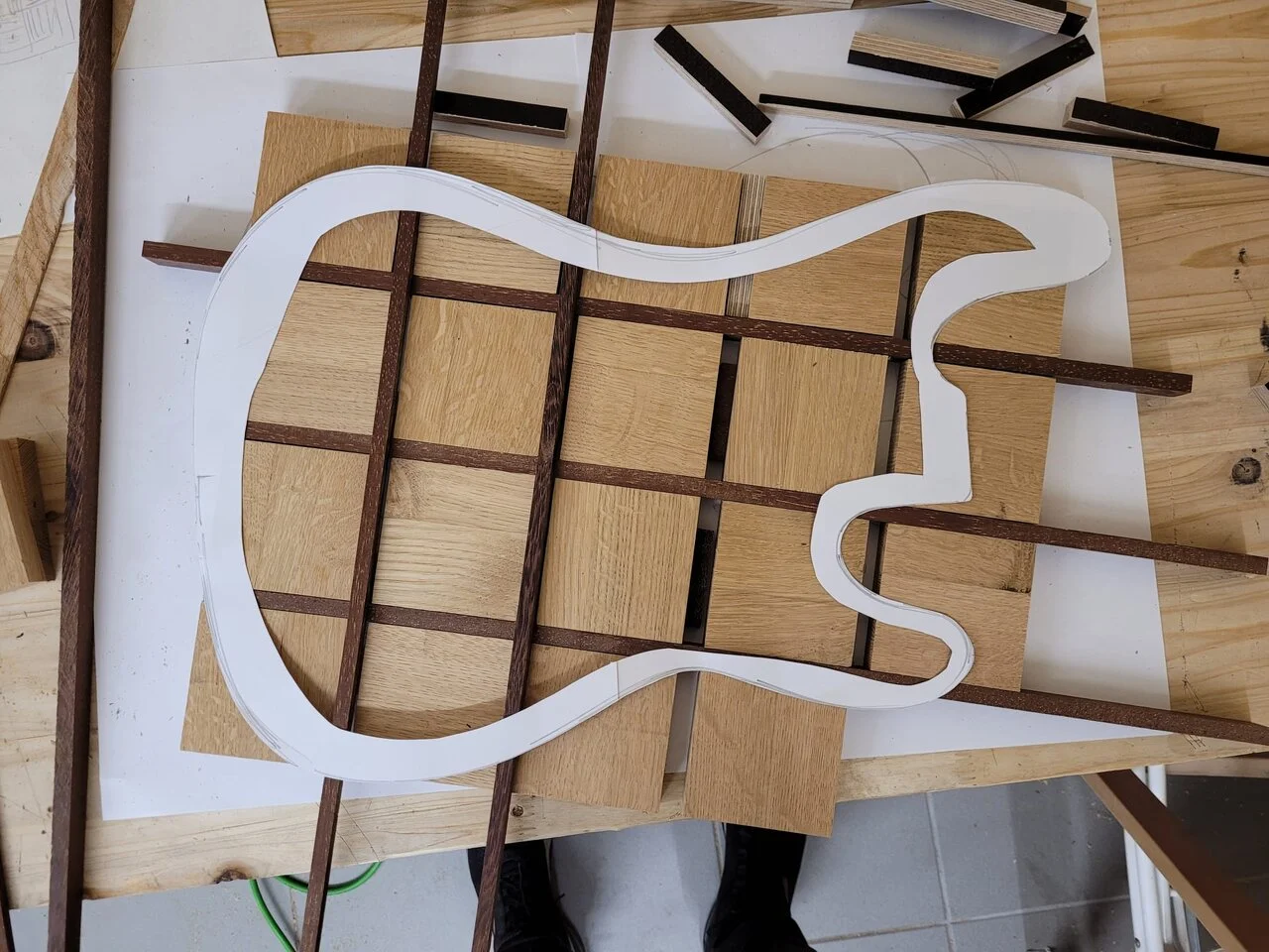 macht es Sinn, dass das Mittelstück des Basses ein durchgehendes Stück ist? Macht es Sinn da Dinge zu verleimen? Der Parkett hat dunkle Urwaldholzteile und helleres Buche (glaube ich). Kann grundsätzlich bei einer Konstruktion mit einer Decke irgendwie mit Formen umgegangen werden? Oder sollten die Pickupfräsungen nicht über die geleimte Stelle gehen (bei einer Decke mit anderem Holz oder grundsätzlich?)