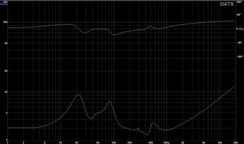 Hier die Impedanzmessung der Monitor Wedge (12'' Bass + 5'' Mid)
