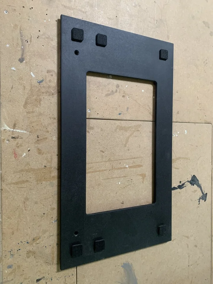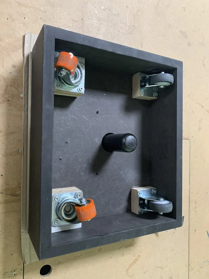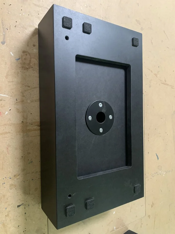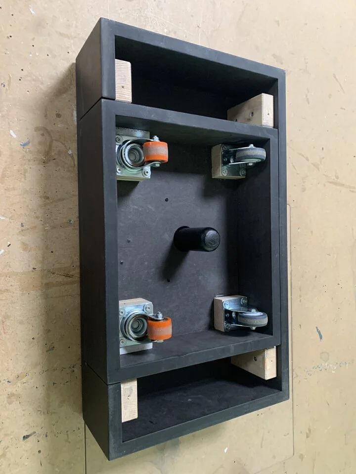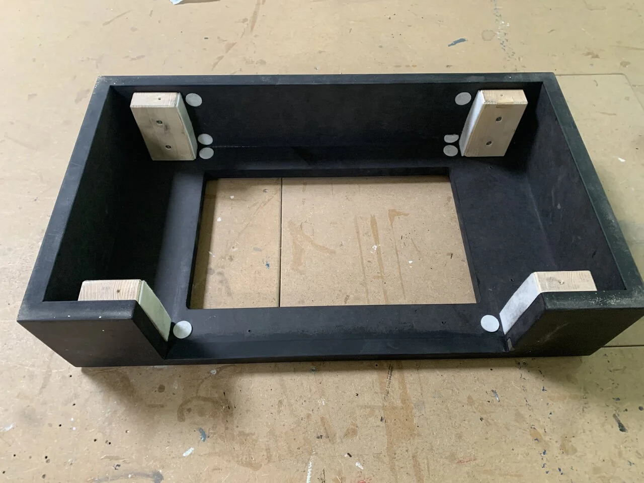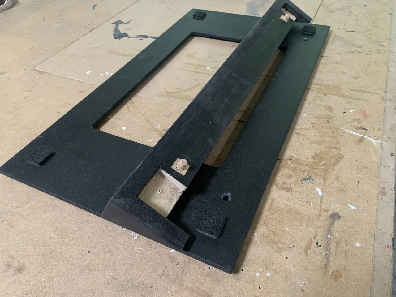 Ausgefuchste Konstruktion, Kompliment!Die letzten Optionen betreffen dann den Einsatz als Monitor. Entweder auf einem Stativ oder liegend. Dafür gibt es ein dreieckiges Pass-Stück das mittels Holzdübeln auf den Sockel bzw. die 8er Platte gesteckt wird.
