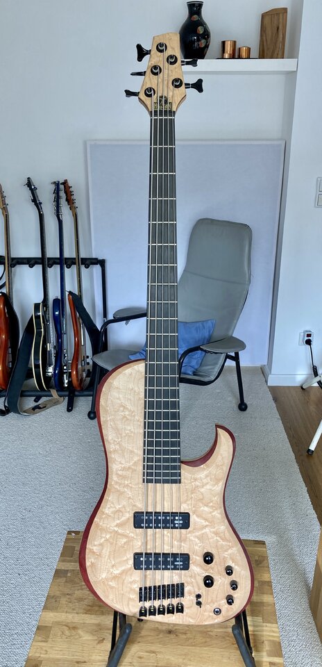 - er war sehr kulant. z.B.: nachtrĂ€glich noch die Daumenmulde auf der HalsrĂŒckseite tiefer ausgehoben (inkl. lackieren), Pickups getauscht, und eine alte Wartelistenposition von mir galt immernoch, sodass ich meinen Bass recht schnell hatte.