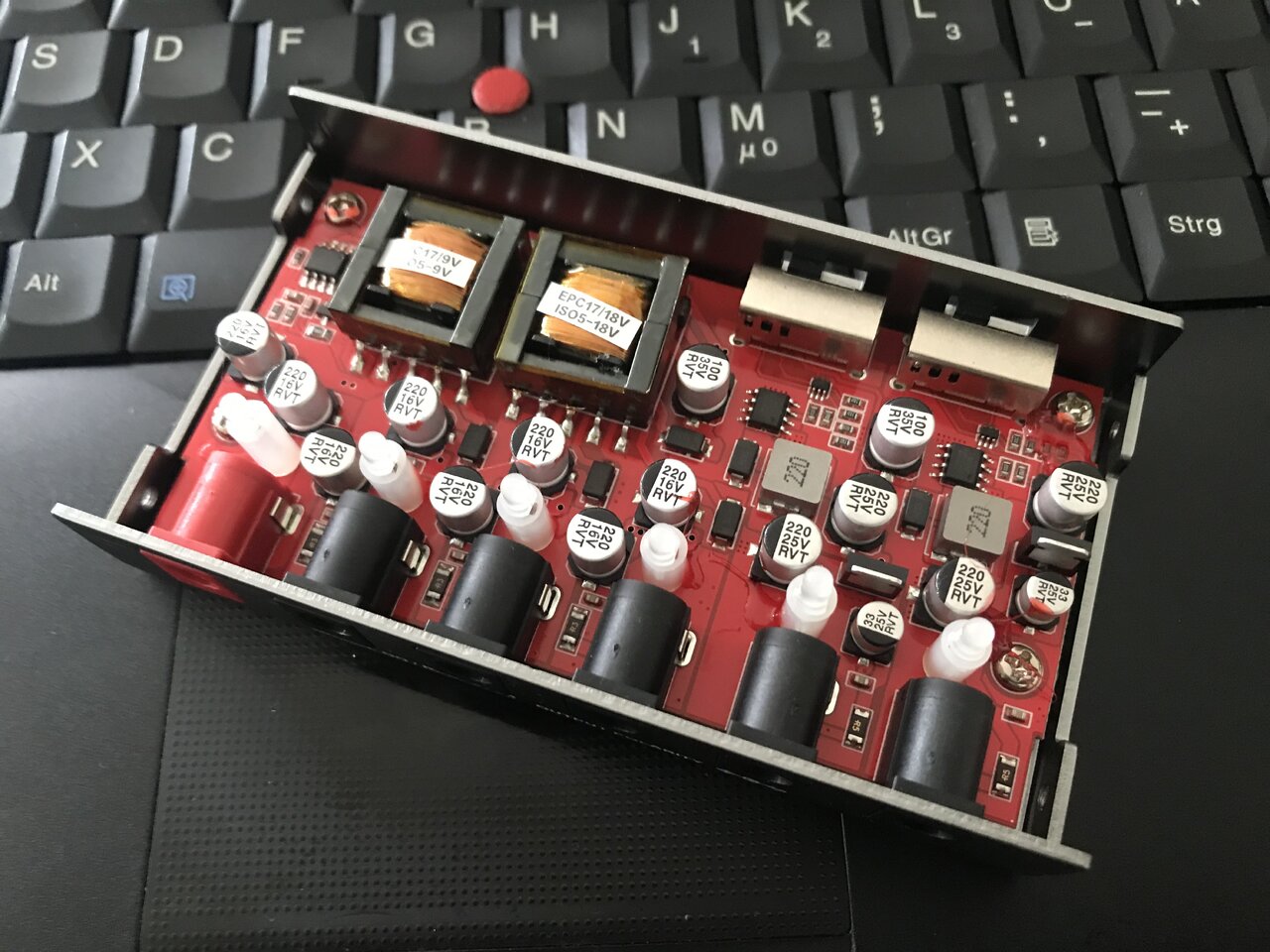 Die Herausforderung besteht nun allerdings darin, dass das HX Stomp eine Stromaufnahme von ~1A hat, während der M108 eine Spannung von 18V erfordert, das ISO-5 Pro aber nur über zwei zwischen 9/12/18V umschaltbare Ausgänge mit einer Stromstärke von jeweils 0,5A (Ausgänge 4-5) und drei weitere 9V-Ausgänge mit einer Stromstärke von jeweils 0,3A (Ausgänge 1-3) verfügt; alle Ausgänge sind dabei laut Thomann-Website einzeln isoliert.