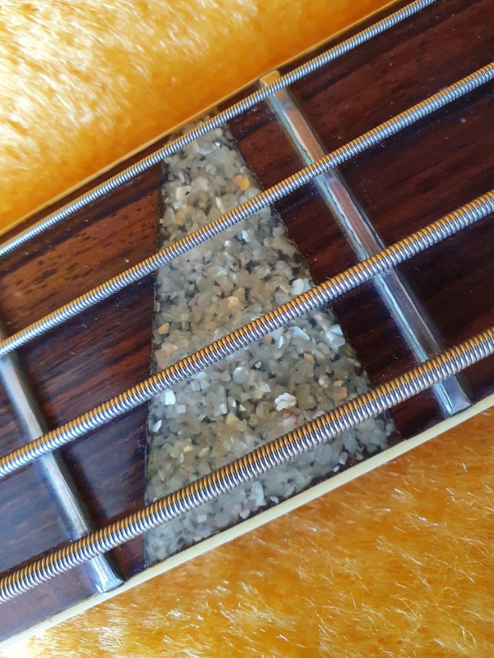 Guter Zustand, Schraubhals, zwei Möchtegern-Humbucker, klingen top! Dritter PU als Ersatz dazu, verbogene Brücke durch alte Rickenbacker Brücke ersetzt. Die gebogene Brücke kann auf Wunsch mit in den Koffer.