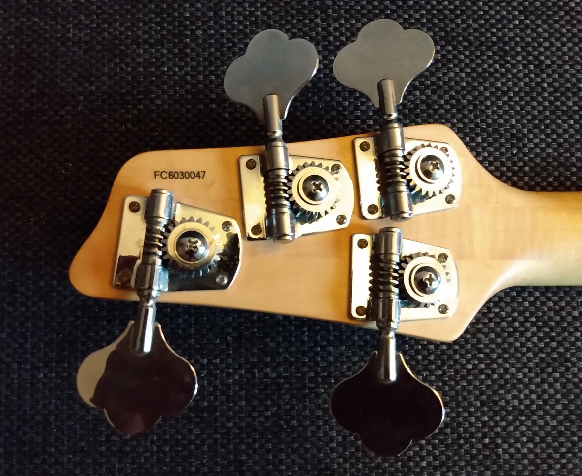 Denn an sich mag ich den Bass. Der Hals liegt mir, das tilt back Design vom Kopf gefällt mir und string through body auch. Nur ein wenig schwer finde ich ihn, ca. 4800g wiegt er und ist damit ein wenig schwerer als meine (willkürlich gesetzte) Obergrenze. Das nehme ich aber gern in Kauf, wenn er denn dareinst so klingen wird, wie ich es mir vorstelle und erhoffe.