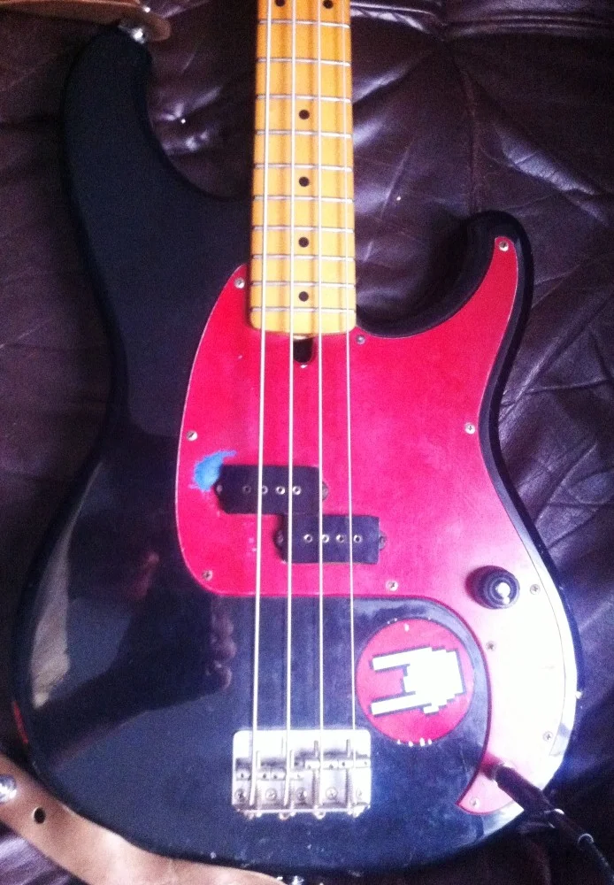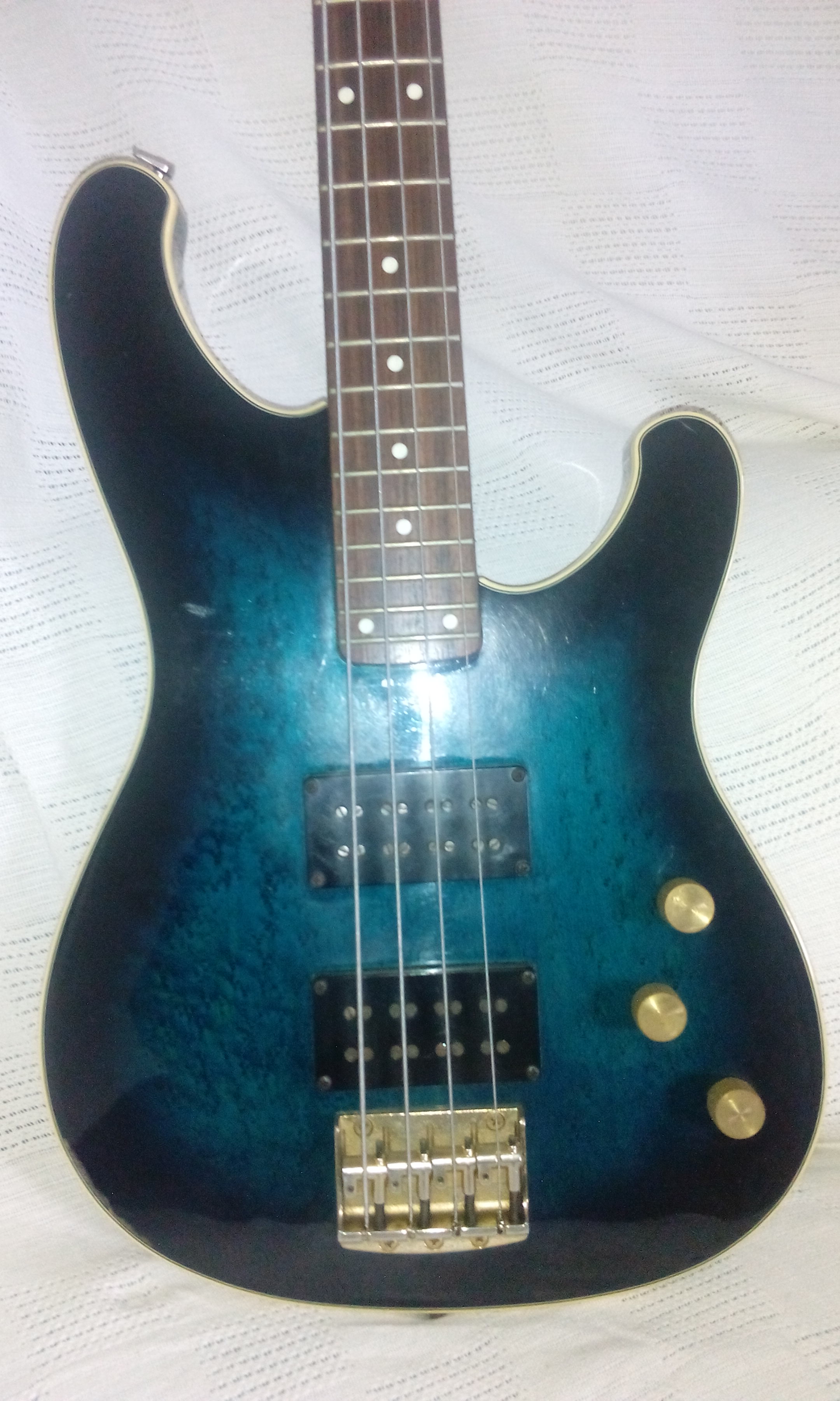 Den Bass habe ich Mitte (Ende?) der 80er gebraucht gekauft... damals war das Schlagbrett, glaube ich, noch weiß. Hab dann die Tonblende ausgebaut und das Schlagbrett Blau-Metallic lackiert.