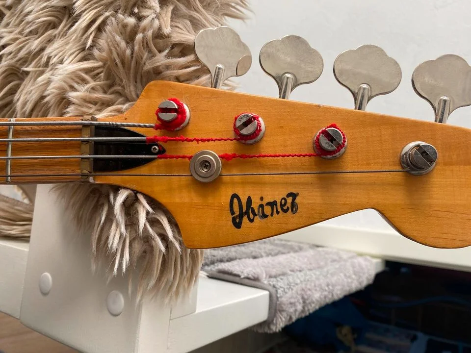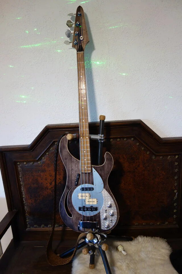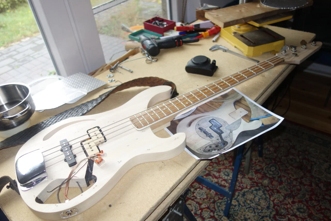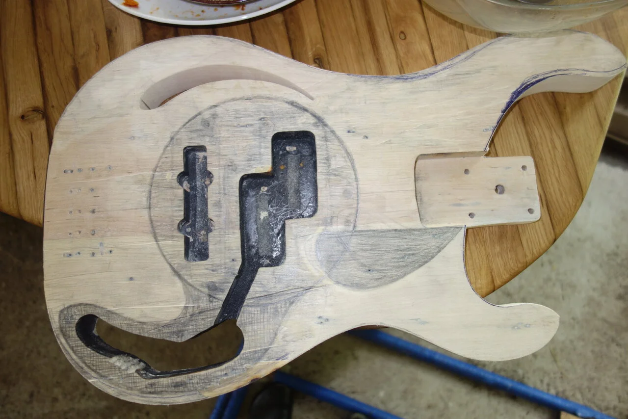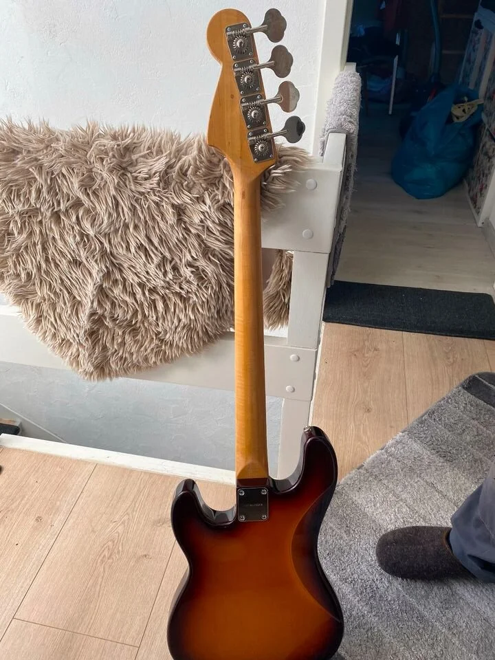 Mein aktuelles Projekt ist ein Bass mit altem Ibanez Hals und wahrscheinlich einem nicht dazugehörigen Korpus aus Massivholzblöcken verleimt. Hab doch noch die Bilder von 2022 wiedergefunden, die ich vor dem Kauf aus der Anzeige heruntergeladen hatte.