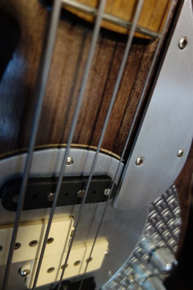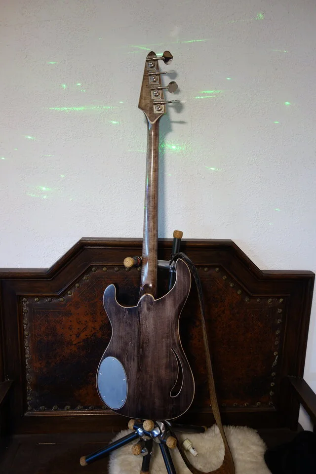 Der Korpus hatte 8 Halsschraubenlöcher, war viel dicker (4,5cm) als ein normaler Fender und viel klobiger insgesamt,