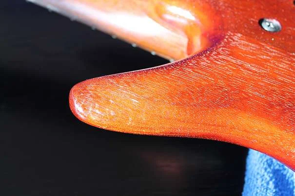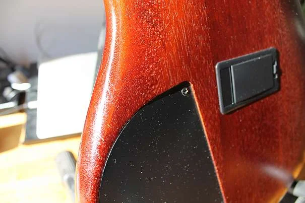 Der Bass ist in einem super Zustand. Der einzige Makel ist an der Korpus-rückseite, wo der Lack vom Gürtel abgekratzt wurde. Habe es versucht so gut wie möglich zu fotografieren.