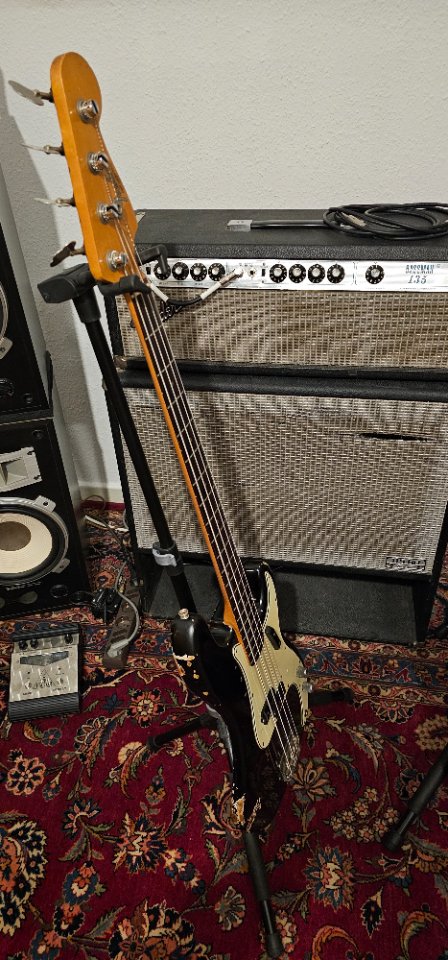Sowas habe ich mal selbst zusammengeschnitzt. Ziel der RD-Bass. Also T-Bird-artige Form. Der Bass rutscht seitlich raus. Was bei Strandbergs wegen der seitlichen Kniemulde vermutlich klappt (aber bei meinee beiden Instrumenten mit diesem Feature auch nicht!) funktioniert offenbar nicht allgemein.den strandberg ständer hatte ich ja weiter oben gepostet. ob der auch für andere bässe passt, weiss ich nicht, aber prinzipiel lässt sich so einer easy selber bauen, ich würde allerdings eher multiplex verwenden: