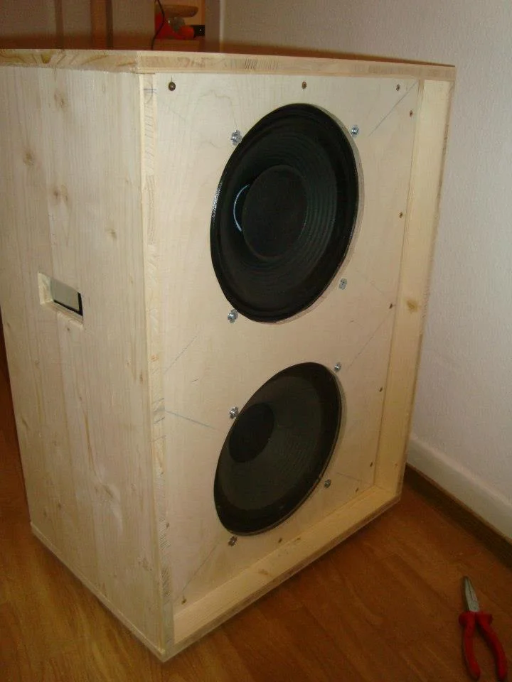 Sowas ähnliches baue ich gerade selbst. Eine 112 mit Breitbandchassis und abgeschrägter Front. Ziemlich klein und so, dass ein alter Dynacord (Eminent / Bassking / Imperator) draufpasst. Eine zweite 12er würde ich dann allerdings eher obendrauf stellen und nach vorne strahlen lassen. Dann pusten die Höhen nicht in den Himmel.