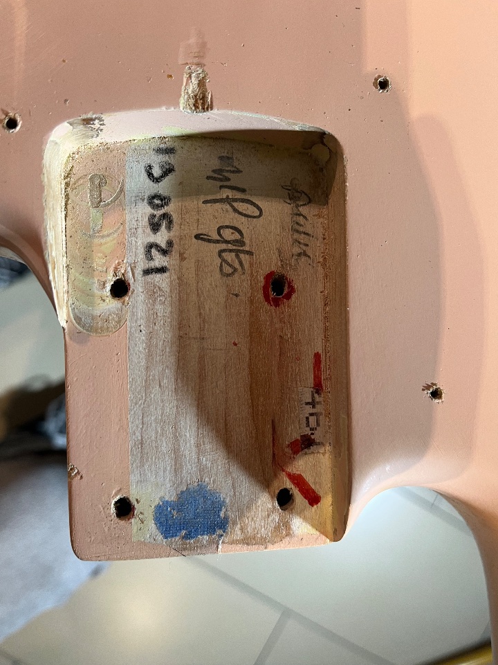Hab heute den Hals von meinem Jazz Bass abgeschraubt und dabei gemerkt, dass ich keine Ahnung hab von welchem Hersteller der Korpus stammt. Der Korpus ist Shell Pink mit leichtem Ageing, was ziemlich gut gemacht ist. Hab den Bass Mitte 2022 gebraucht auf Kleinanzeigen gekauft. Kam mit einem relativ grobschlächtig reparierten und abgeschliffenen Fender American Vintage Hals (Trussrod wurde wohl getauscht) und ist ein super Player.
