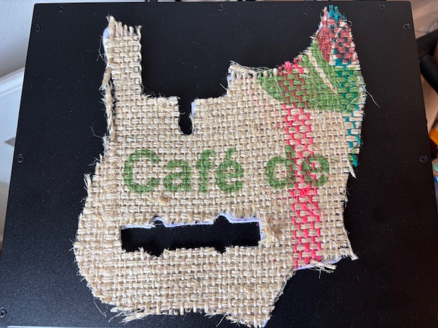 Da ich seit dem Verkauf des Yamaha BB735 ( in Dark Coffe) keinen Bass mit Kaffee- Bezug mehr habe, wollte ich dem V5R ein neues Pickguard aus einem alten originalen Kaffeesack machen. Das Projekt ist aber wieder in der Warteschleife, da der Stoff mehr ausfranste als gedacht, auch der Zuschnitt war nicht einfach. Mal sehen… vielleicht finde ich ja ein anderes hübsches Pickguard für den Bass. Hat jemand von euch vielle8chbeinen Tipp, wo ich so etwas herbekommen könnte?