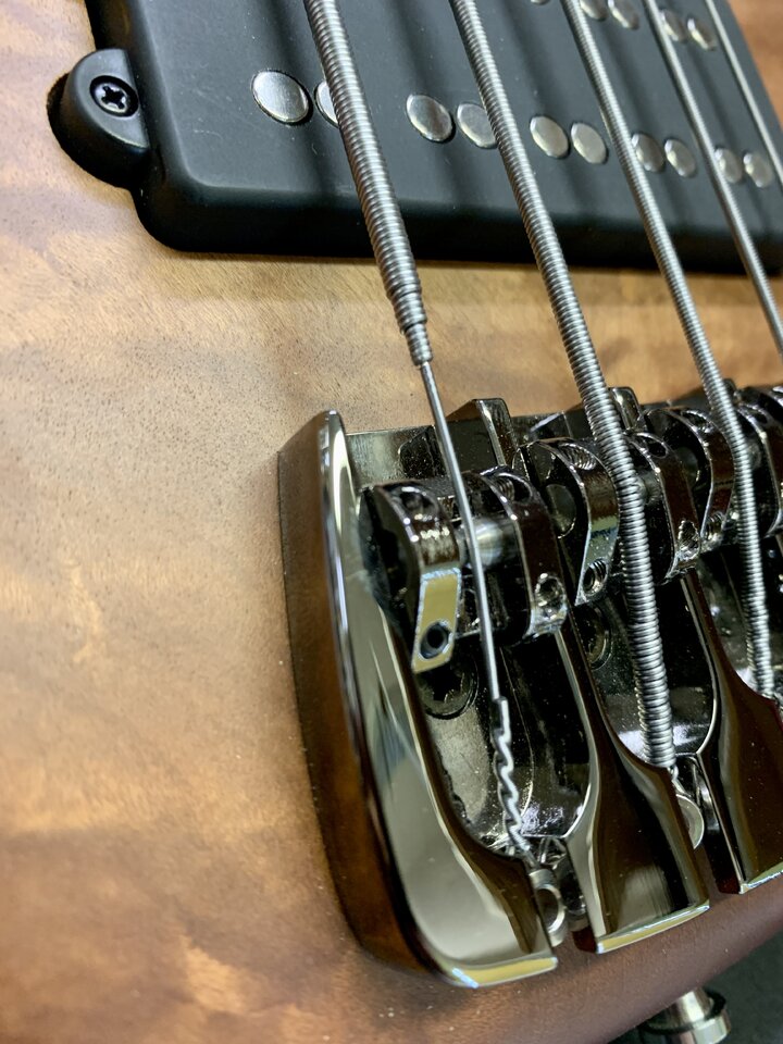 Die Saiten werden mit Flagolett am 12. Bund gestimmt. Dann werden die Saiten am 12. gedrückt, und die Höhe der Reiter angepasst, damit es gerade so nicht schnarrt. Danach wird mit der selben Methode die Oktavreinheit eingestellt.