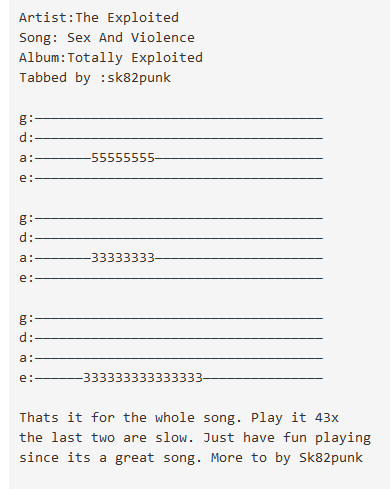 Da hat sich sogar jemand mühe gemacht und den Song in Tabs rausgeschrieben / gehört... der war sicher eine weile daran beschäftigt