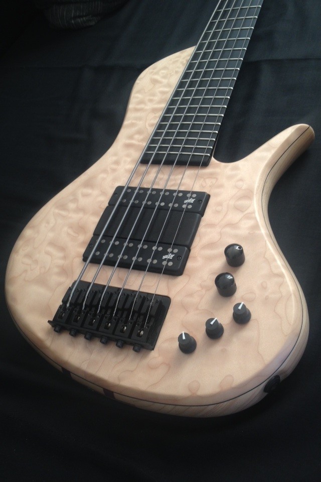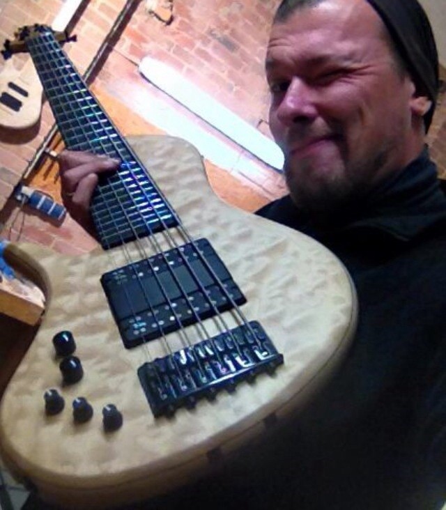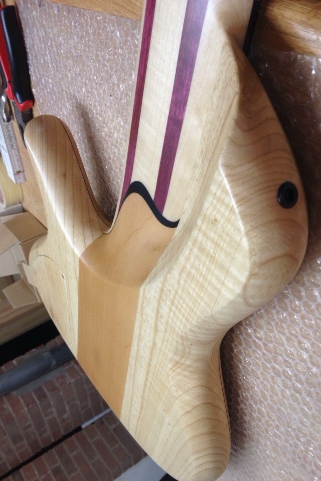 sehr schöne arbeit---mir gefällt, dass die maserung gut zu der form passt...wirkt sehr harmonisch, der bass, auf mich...den deckel hinten hätte ich noch mit dem dem selben dunkleren holz wie in der korpusmitte dekoriert...weiß nicht, warum man das oft mit dem selben holz macht, wie mit dem korpusholz...man siehsts ja sowiesoVon diesem hübschen Bässchen wird es demnächst auch ein Video geben (und sogar ein Duo mit dem Whiteburst) stay tuned