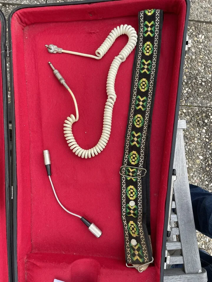 Füre mich sieht er original aus. Auch der Koffer mit dem dem vergilbten Schaumstoff. Aber um auf Nr sicher zu gehen musst du den Hals abschrauben. Nur dort sieht man den orig. Stempel mit Datum. Würde mir von dem Herren ein Foto schicken lassen, ehe du hinfährst! Um sicher zu gehen dass alles Original Teile sind (auch Elektronik), solltest du eine Expertise bei einem vintage Händler machen lassen, Kostet ca 200.--250.- EUR