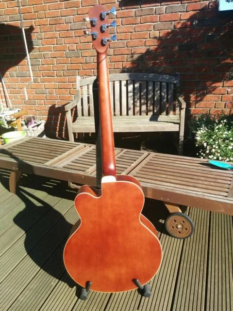 Was auffällt: das Ding ist groß! Lässt sich aber gut bespielen - der Hals ist gerade und hat keine Macken.
