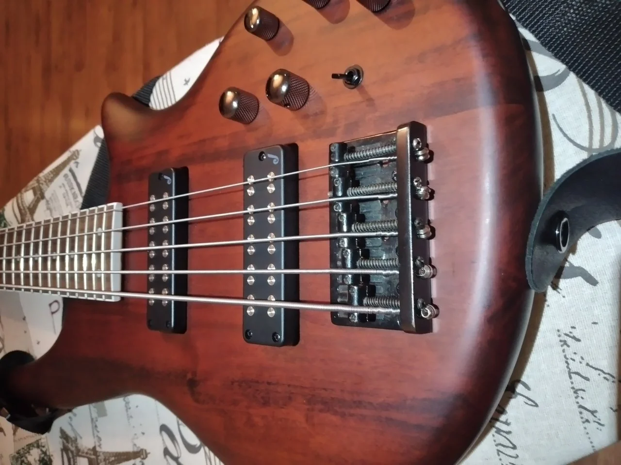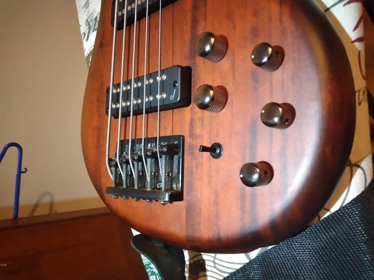 nicht um die halbe Welt verschicken wollte habe ich nach einem preiwerten 5 Saiter mit 35 Zoll Mensur als Reisebass gesucht. Gelandet bin ich dann beim Jackson J3SV 5 um die 350€, der sofort lieferbar war. Vor dem Abflug keine große Zeit zum testen - also Hals abgeschraubt, Korpus in den Koffer und Hals als Handgepäck. 12 Stunden später wieder zusammengeschraubt - und Entsetzen