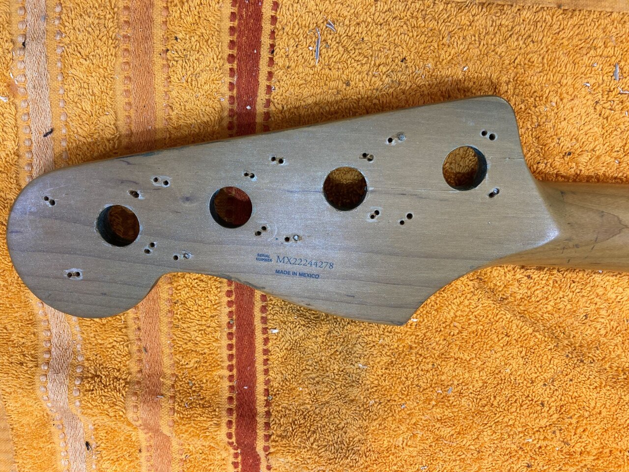 Hier ist der Plan den Hals zu restaurieren, und damit eine J-Bass aufzubauen.