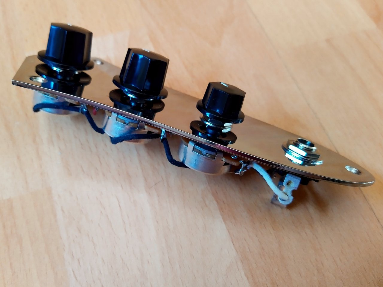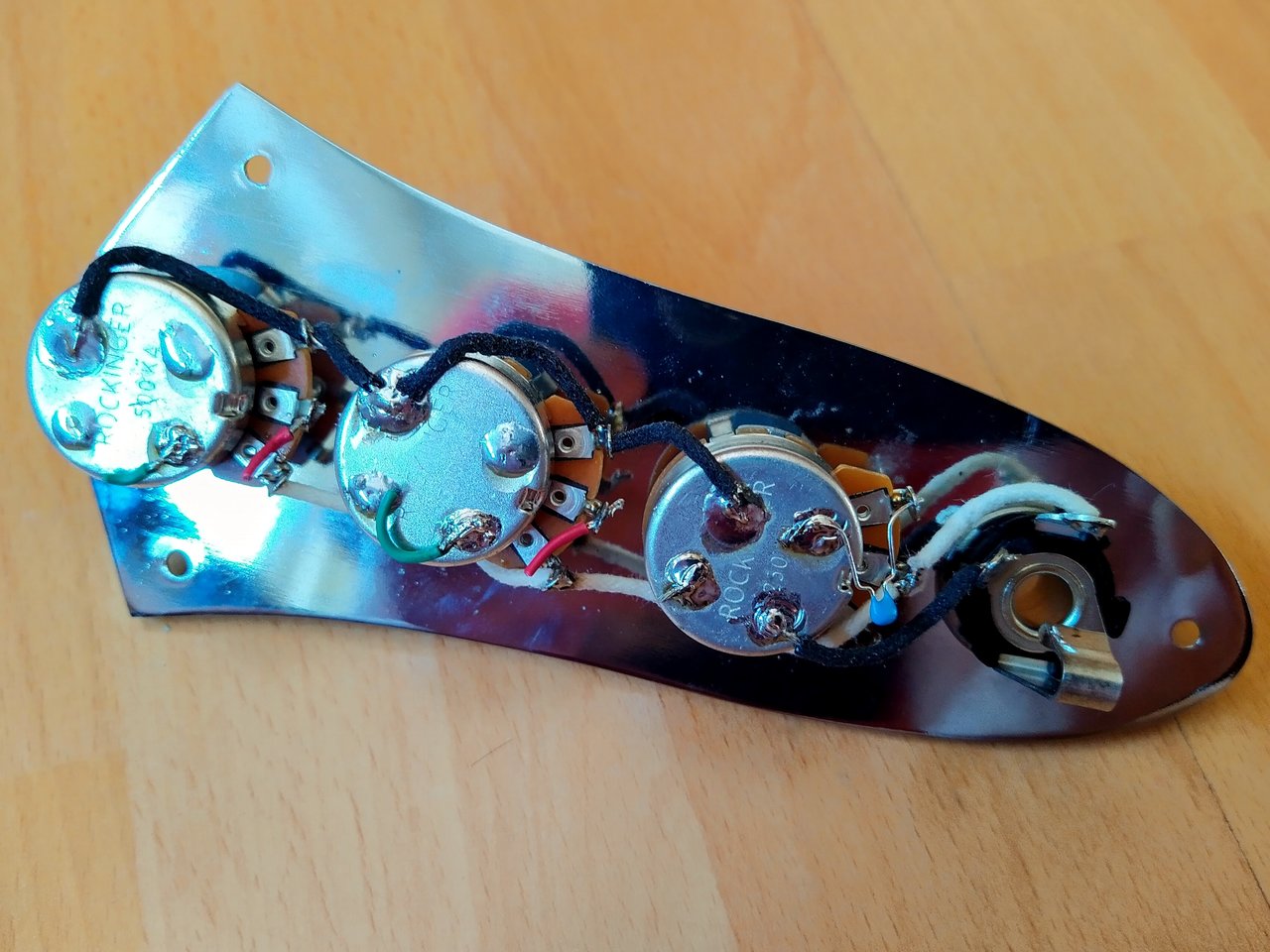 Verkaufe eine Jazz Bass Elektrik, die ich jüngst selbst gelötet habe (2x500kOhm Volume, 1x 250kOhm Tone). Potis und Knöpf habe ich neu bei Rockinger gekauft. Dem Bass habe ich nun eine Richter Elektrik spendiert.