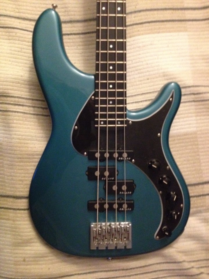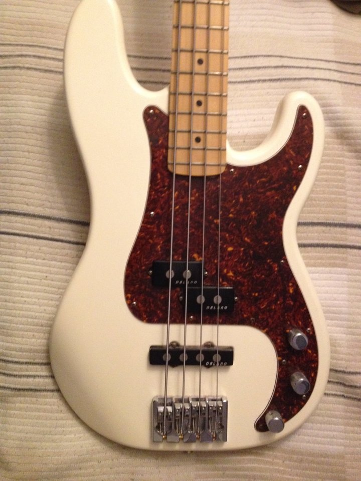 Nicht ganz Jazz-Bass ein von mir aus Einzelteilen zusammengeschusterter Stu Hamm Bass mit Moses Graphit Hals und natürlich mit den besagten Delanos: