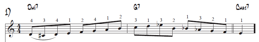 Ich habe aber festgestellt, dass mein kleines (und mittlerweile auch nicht mehr neues) Hirn ein echtes Problem damit hat, sich solche vorgefertigten Licks wirklich einzuprägen. So habe ich mir zB dieses II-V-I-Lick vorgenommen, weil mich das wirklich anspricht: