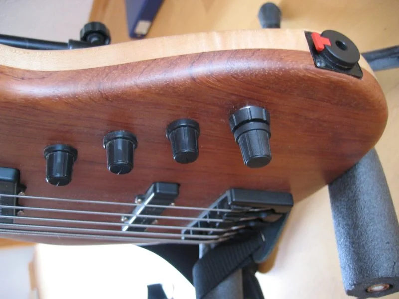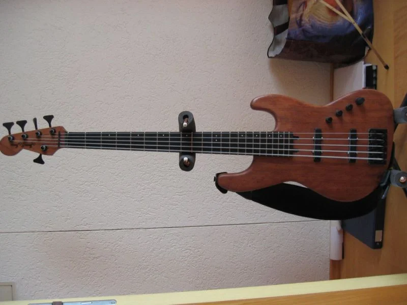 Der Bass ist sehr schön von Hand verarbeitet, der Hals leicht asymmetrisch, super bequem zu spielen! Stringspacing ca.17mm.