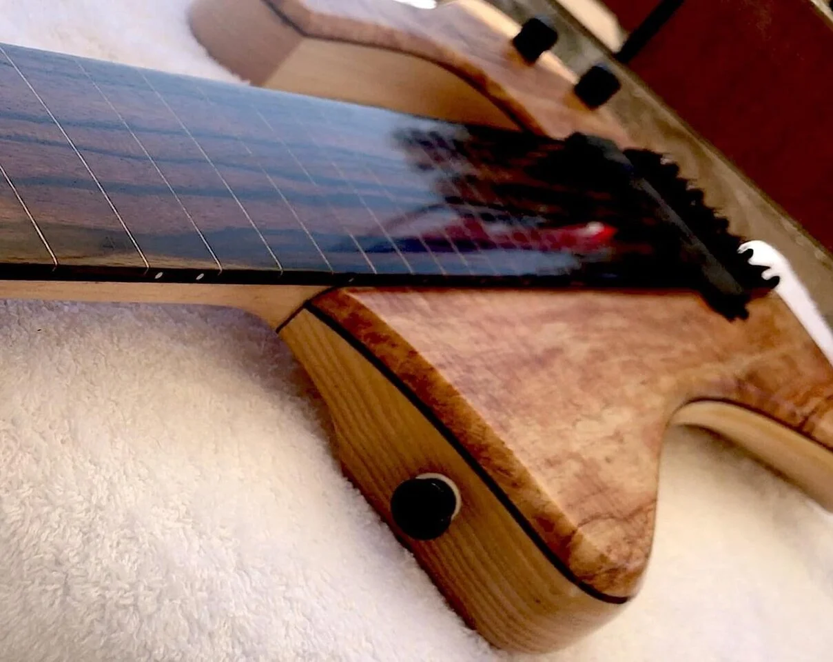 Da das Fretboard durch das exzessive Ölen ziemlich dunkel geworden ist, suche ich jetzt ein sehr helles Holz, damit ich die Fretlines sehe.