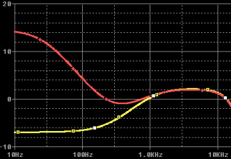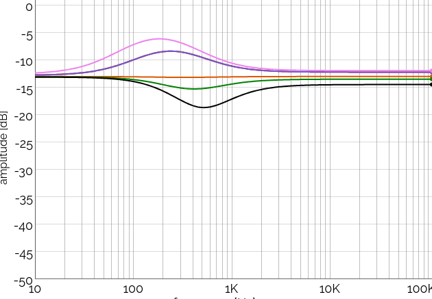 Falls man es oben nicht gut sieht, die Frequenzkurven sind (in Bezug auf die Basis-Linie von -13db)