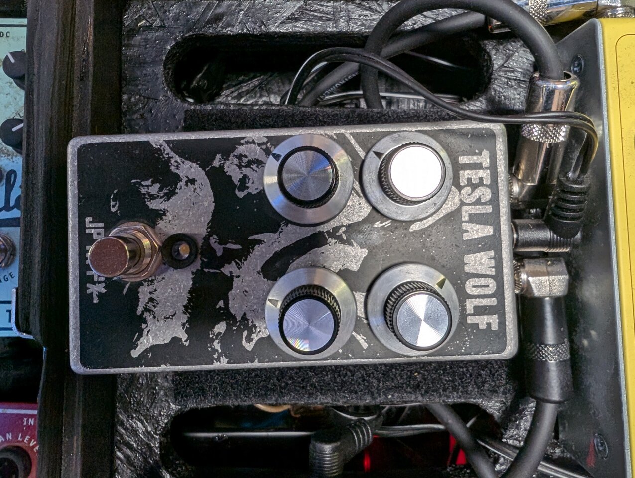 Ich hab heut hier ausm Forum einen Tesla Wolf bekommen - saugeil das Teil, bleibt auf jeden Fall aufm Board. Erstmal hab ich's in dem Pfad, der oktaviert und plus-Quinte und mit 400-Hz-Highpass in einen 2x12"-Gitarrencombo geht. Da machts genau die richtige Verzerrung und fette Obertöne um den fehlenden Gitarristen zu ersetzen.