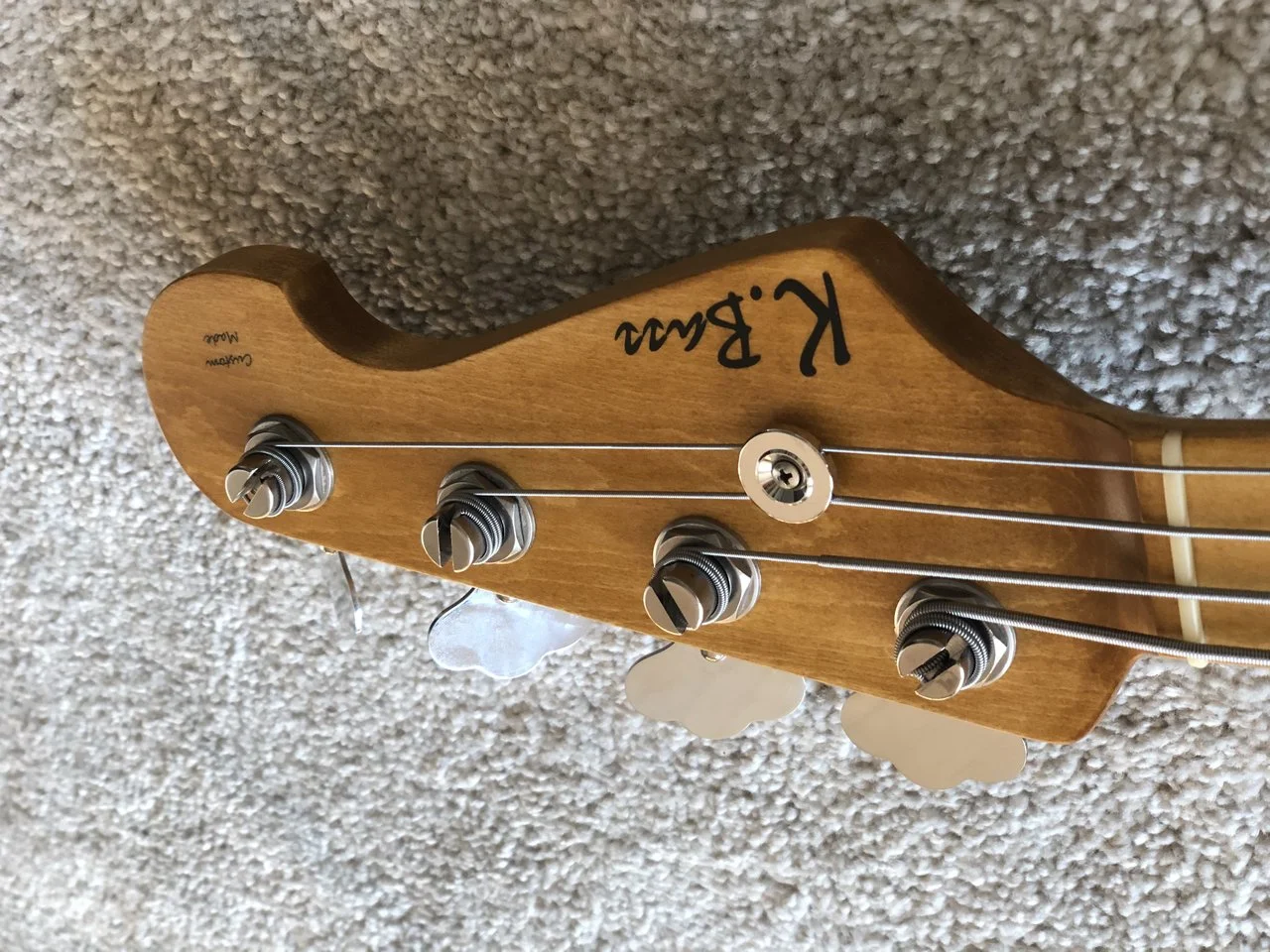 Hallo in die Runde, das ist mein erster Beitrag im Forum und ich wollte den zum Anlass nehmen, meinen K.Bass von Knut zu zeigen. Baujahr ist 2016. Er ist ein wirklich fantastischer, schöner und vor allem leichter Jazzbass in 3 Tone Sunburst und begleitet mich hoffentlich mein Leben lang.