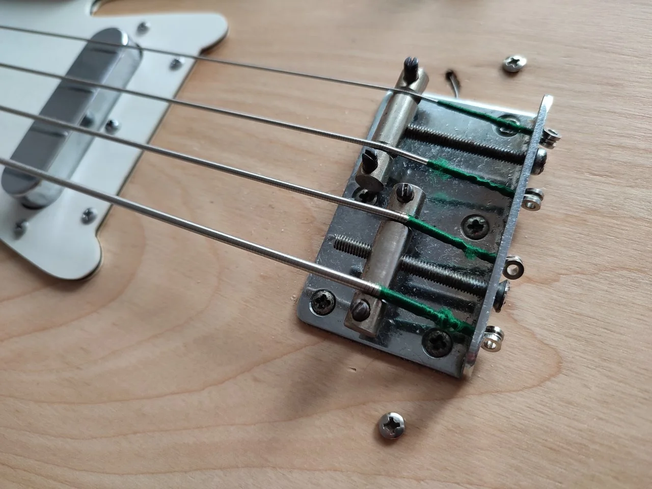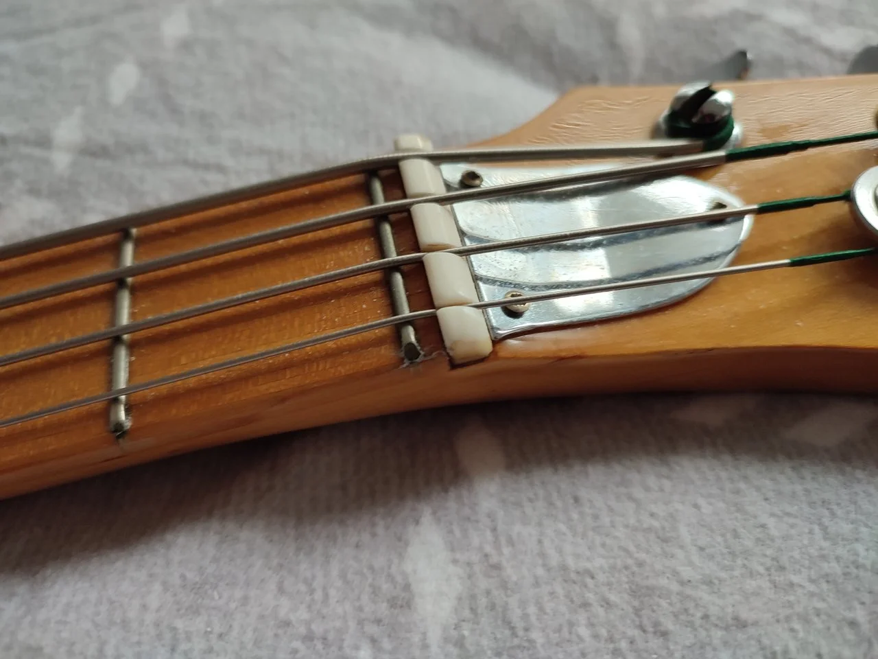 Was bringt dich zu der Annahme? Sieht doch alles 100%ig aus wie bei dem von Mojostompboxes, PG, Kopfplattenform, Tuner etc... warum sollte das nicht original sein?Aber beim Kopf bin ich fast sicher, das es vorher eine PB Kopfplatte war, die jemand auf T-Bass umgestickt hat.
