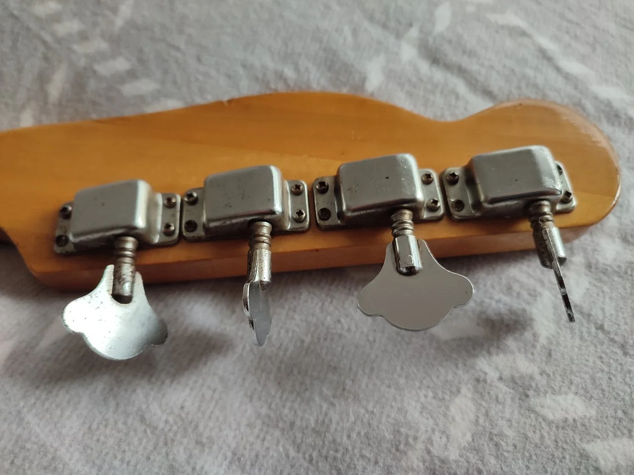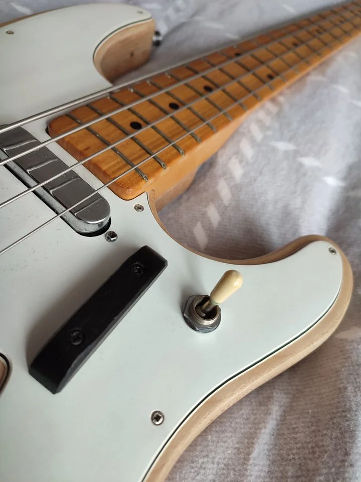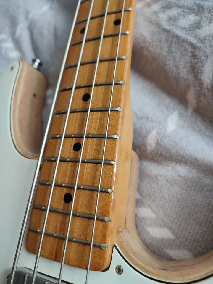 meine persönliche Meinung, super!Die sechsfache Halsverschraubung deutet auf einen japanischen Kay-Bass hin evtl. auch Moridaira (Morris). Die Schrauben sind nicht Original. Die Poti-Knöpfe sind vermutlich auch nicht original. Und ja, der Body wurde entlackt.