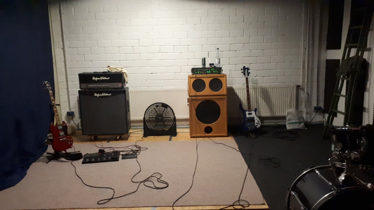 Well, it works! Geiles Setup incl. HaarmähnenausdemGesichthalter!Also für die Punk Band habe ich nach vielen Fehlversuchen einen guten alten Trace Elliot am Start . UND da genügt der kleine mit ca 250 Watt .......VÖLLIG !!!