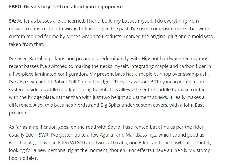 Ich wollte wissen welchen Bass er spielt und stellte fest, dass er seine Bässe selbst baut. komplett.