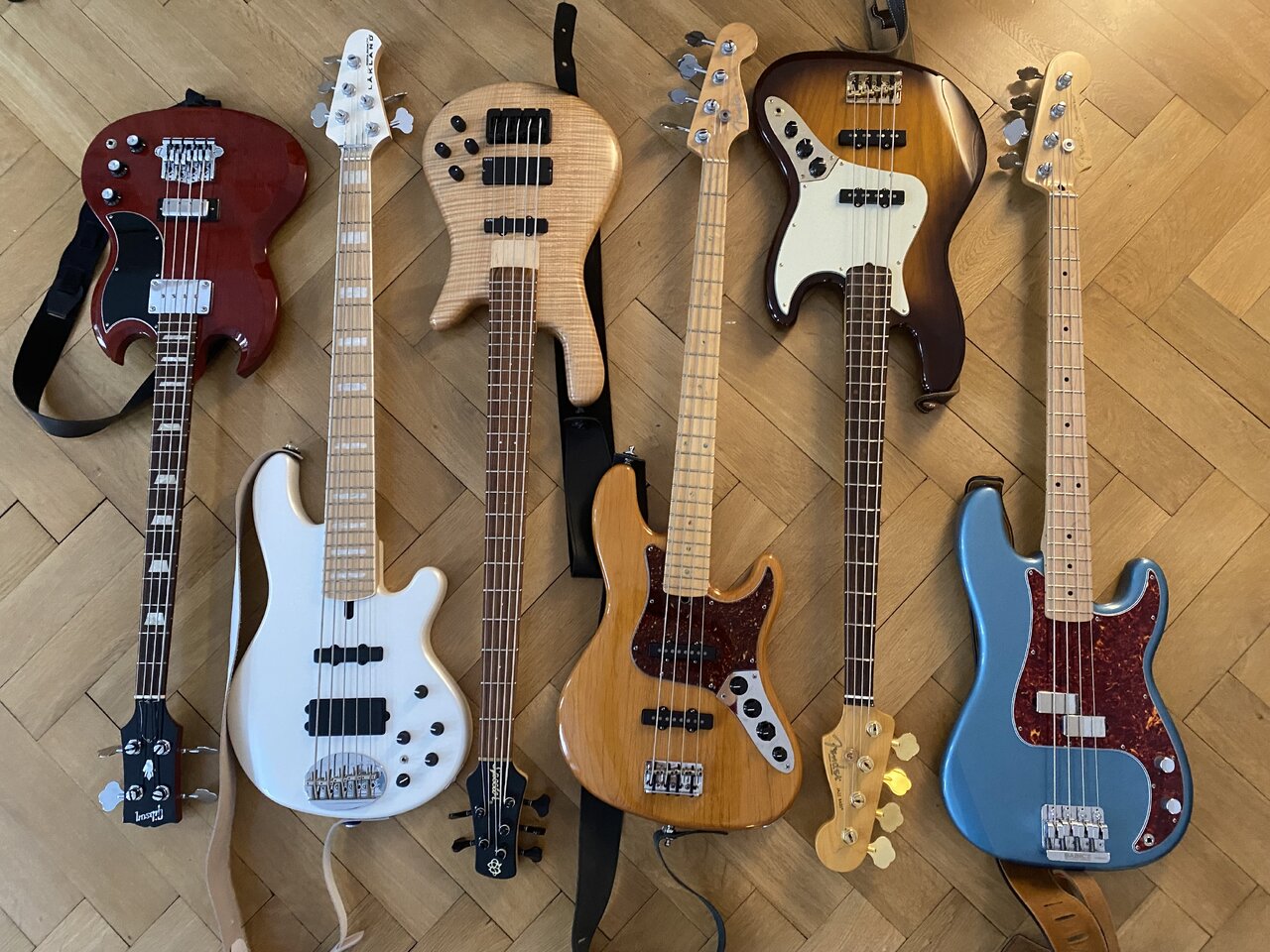 Ich habe dies von einer komfortablen Position aus beschlossen, denn ich habe tatsächlich mehr als ich brauche. 7 Bässe, 2 Verstärker, diverse Pedale, Zubehör und etliche Sätze Saiten. Außerdem habe ich eine Band mit der ich regelmäßig auftrete und regelmäßig neue Stücke erarbeiten.