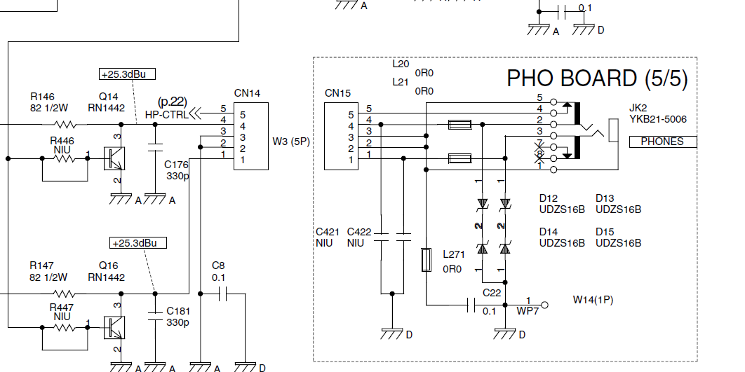 Nachfolgend Auszüge aus dem Service Manual des Cube100 - evtl. grundsätzlich vergleichbar - Blockschaltbild lässt das vermuten:Im einfachsten Fall ist der Schaltkontakt in der Kopfhörerbuchse nicht mehr in Ordnung. Vielleicht mal reinigen oder nachbiegen, sofern man drankommt.
