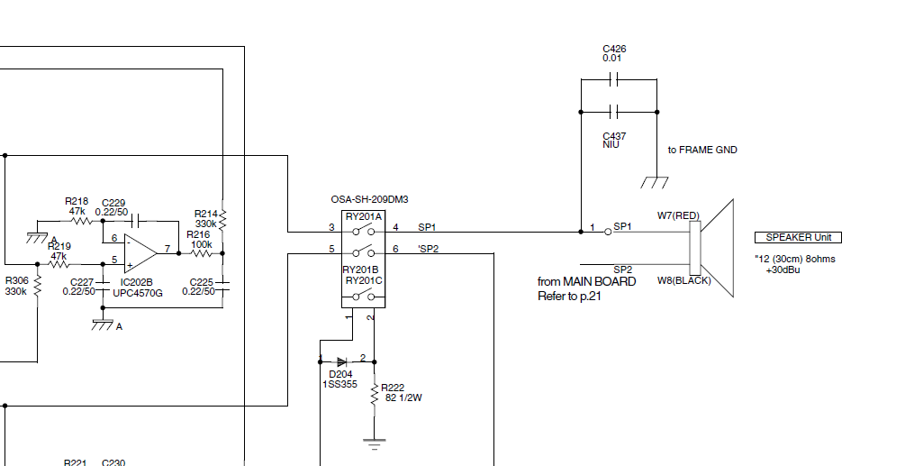 Kein Klacken beim Einschalten.Nachfolgend Auszüge aus dem Service Manual des Cube100 - evtl. grundsätzlich vergleichbar - Blockschaltbild lässt das vermuten: