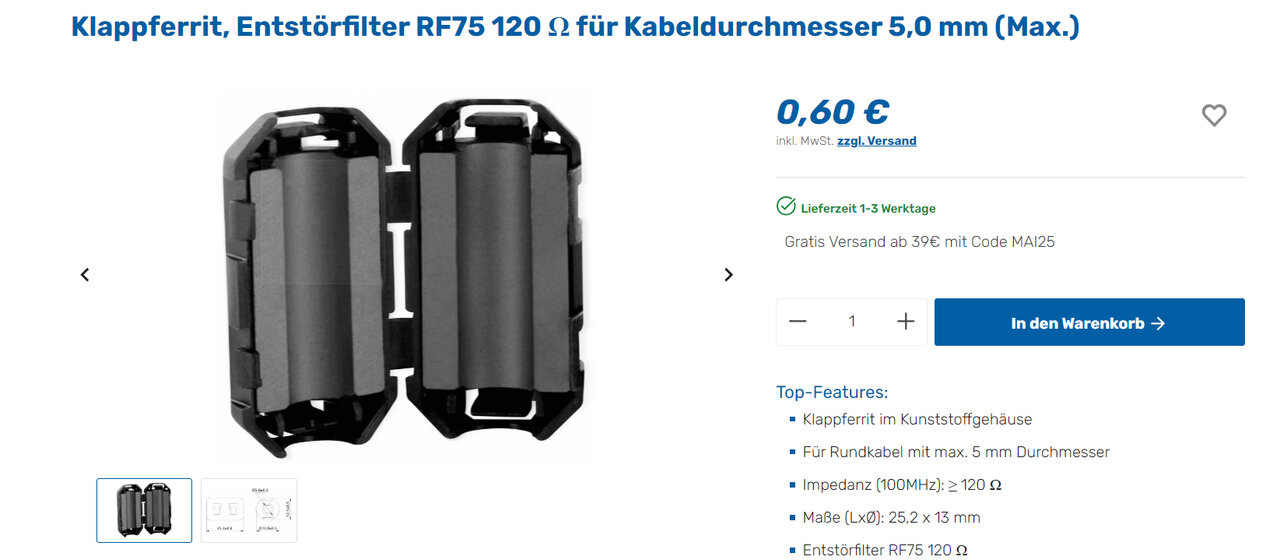 Hallo Experten, bei manchen Netzteilen ist ein Klappferit angebracht, bei anderen nicht, Da das Teil weniger als 1 € kostet könnte ich paar bestellen und ausprobieren, aber mich würde euere Meinung und Erfahrung interessieren, speziell bei Wireless Systemen und Aktivbässen.