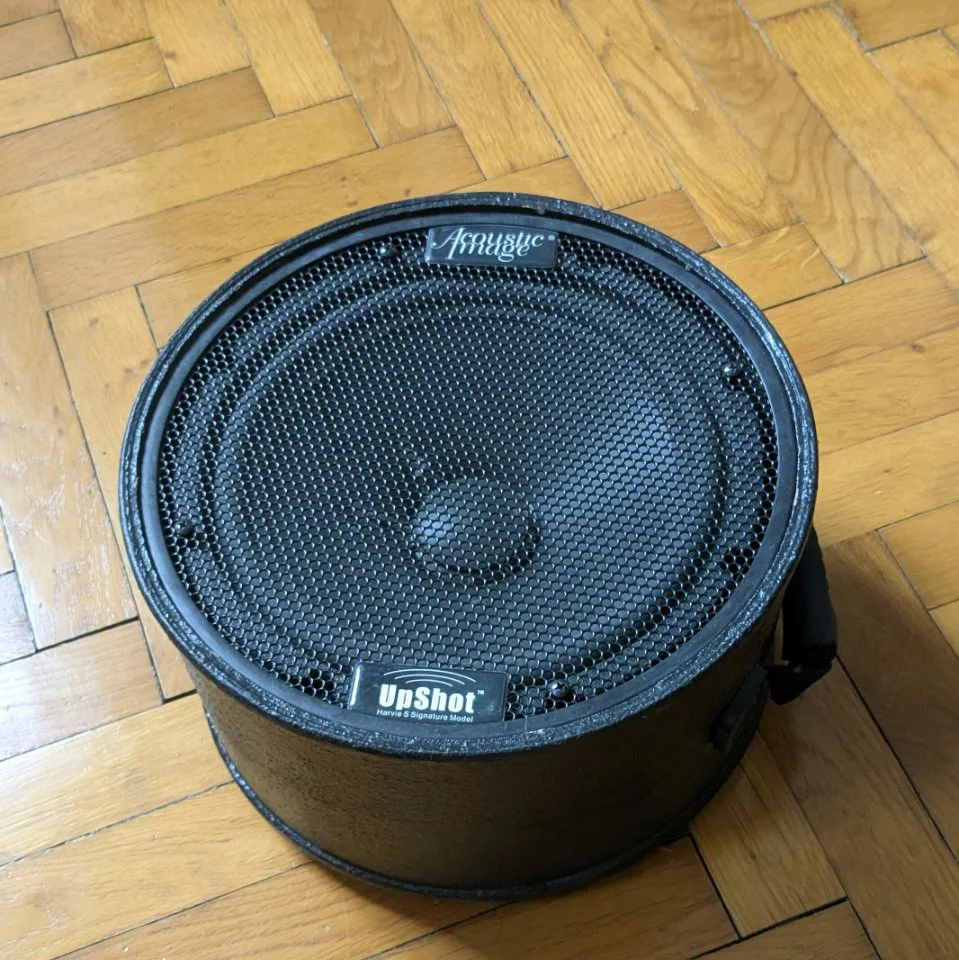 inzwischen proben wir in einem Raum, der eher die Ausmaße eines mittleren Wohnzimmers hat, auch die Auftrittslocations sind öfters kleinere, also ergibt sich das bekannte Problem, daß die Box nur die Hosenbeine bewegt aber kein wirklich ausgewogenes Klangbild an die Ohren kommt.