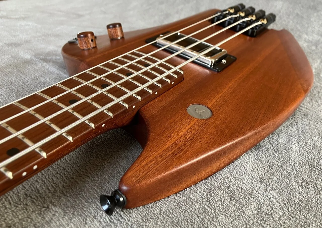 Einfach einen Kolibri Buzz mit dünneren Saiten zu versehen war nicht möglich, denn die Ball-Ends der Gitarrensaiten hätten in den Bass-Tunern ohne Tricks keinen Halt gefunden. Und optisch wäre das Verhältnis von Bass-Tunern zu Gitarrensaiten auch nicht wirklich prickelnd ausgefallen.