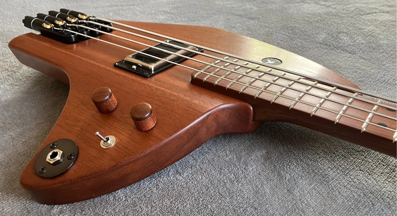 Durch eine Bass-Spielerin, die eine handliches und bequemes Instrument wollte, welches sich wie ein Bass spielen lässt, wie eine Gitarre klingt und für das es eine Auswahl an Flatwound Saiten gibt – die ist unter den Piccolo-Bass-Saiten nämlich sehr mager.
