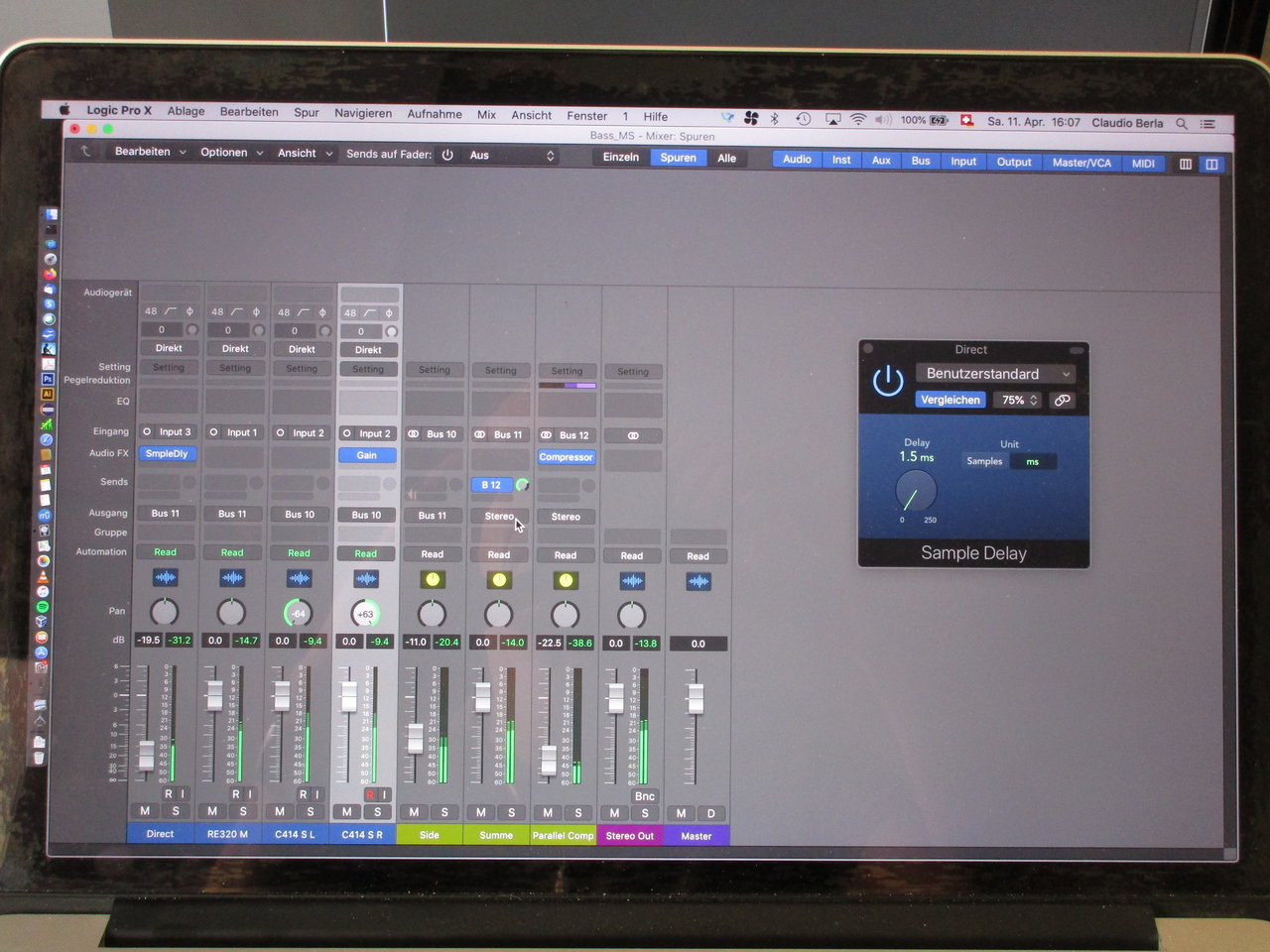 nachdem ich meine Akustikbässe als Experiment dreispurig Stereo aufgenommen habe, nämlich den RMC Abnehmer direkt über Röhren DI, M/S mit einem EV RE320 als Mittenmikro und einem AKG C414 als Seitenmikro, die Mikros in etwa einem halben Meter Abstand zum 12. Bund, das ganze zusammengemischt ziemlich geil klingt (das Direktsignal muss wegen der Phasenlage leicht verzögert werden und braucht es fast gar nicht, aber besser haben und nicht brauchen als nicht haben und dann doch benötigen) habe ich mich gefragt, ob das mit dem Kontrabass auch funktionieren würde.