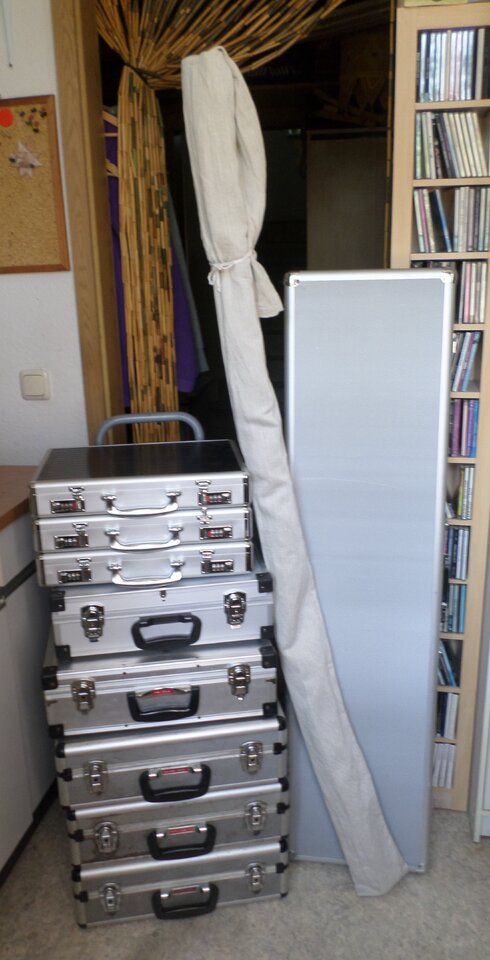 Zum Glück braucht man nicht immer alles. Aber 2 oder 3 von den Koffern sind es mindestens.