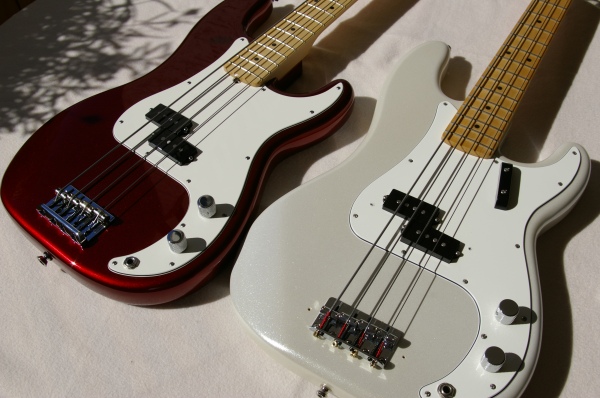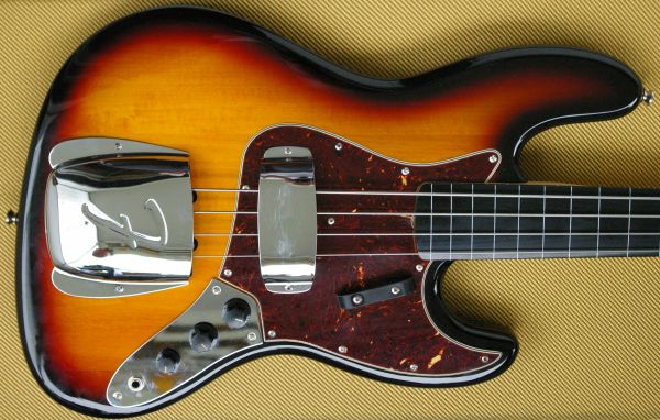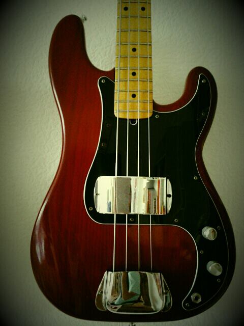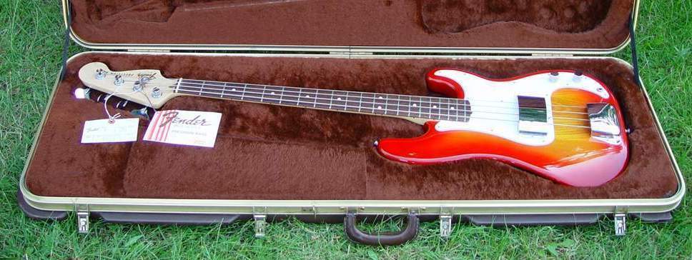 Hier auch ein ehemaliger, ein 1981er Precision, Cherryburst, weisse Pickup Cover, kein Thumbrest, NOS, S9 Seriennummer. Esche. Schwer.