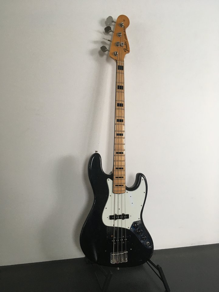 Fender HP Baujahr 1976, dazu Poticode aus 1973, Halsstempel trägt nicht zur Klärung bei, und verkauft wurder der Bass als 72er. Könnte allenfalls die Position des Fingerrest unterhalb der Saiten zur Klärung beitragen? Auf manchen Bässen bei Händlern und auf Reverb scheint das Teil oberhalb zu sein, auf anderen dann wieder unterhalb (unter dem Pickguard sind keinerlei Schraublöcher einer ehemals anderen Postition vorhanden).