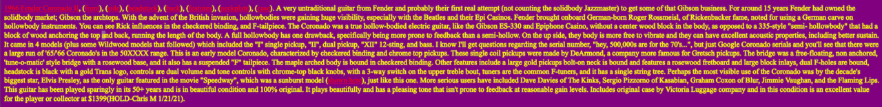 Es gibt eine 1966 Fender Coronado II Gitarre, die sieht so aus,