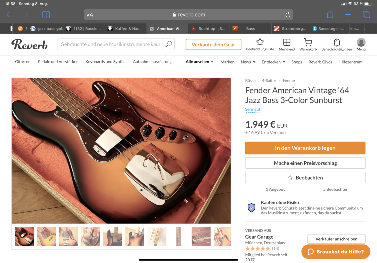 In Shibuya ... wäre Corona nicht, wäre ich wahrscheinlich gerade dort ...Ein 64er ist in München verfügbar. Lies mal die Story auf reverb. Meist geht noch was am Preis, bei Reverb ist immer was draufgeschlagen. Immer direkt das Geschäft anfragen. Ich finde den ziemlich vielversprechend. Wenn Du dort in der Nähe bist, ist der sicher ein Anspielen wert. Insgesamt ist es für einen Fender aber viel Geld, finde ich. In Shibuya steht ein 62er für knapp 1,2 k€… wäre bestimmt der bessere Deal, selbst mit Steuern und Einfuhr.