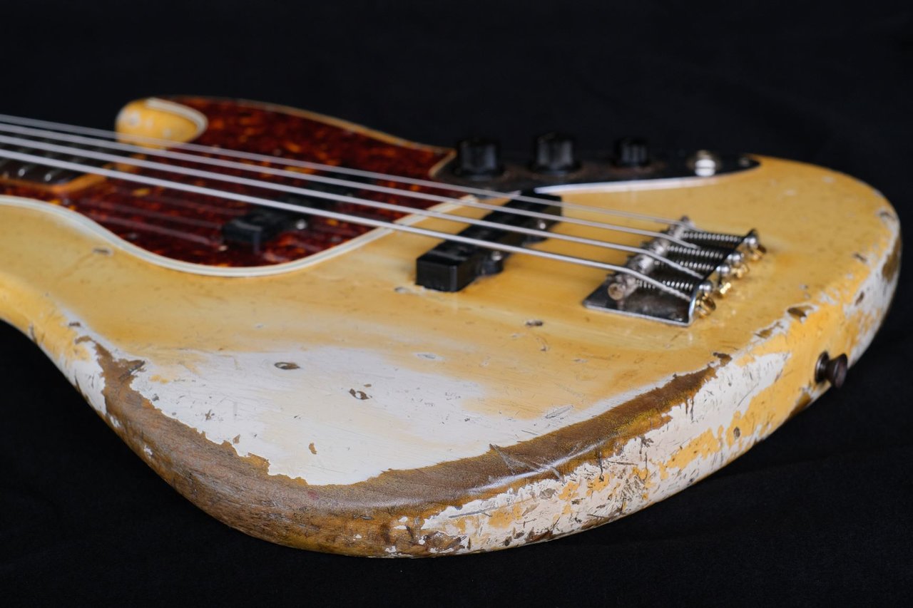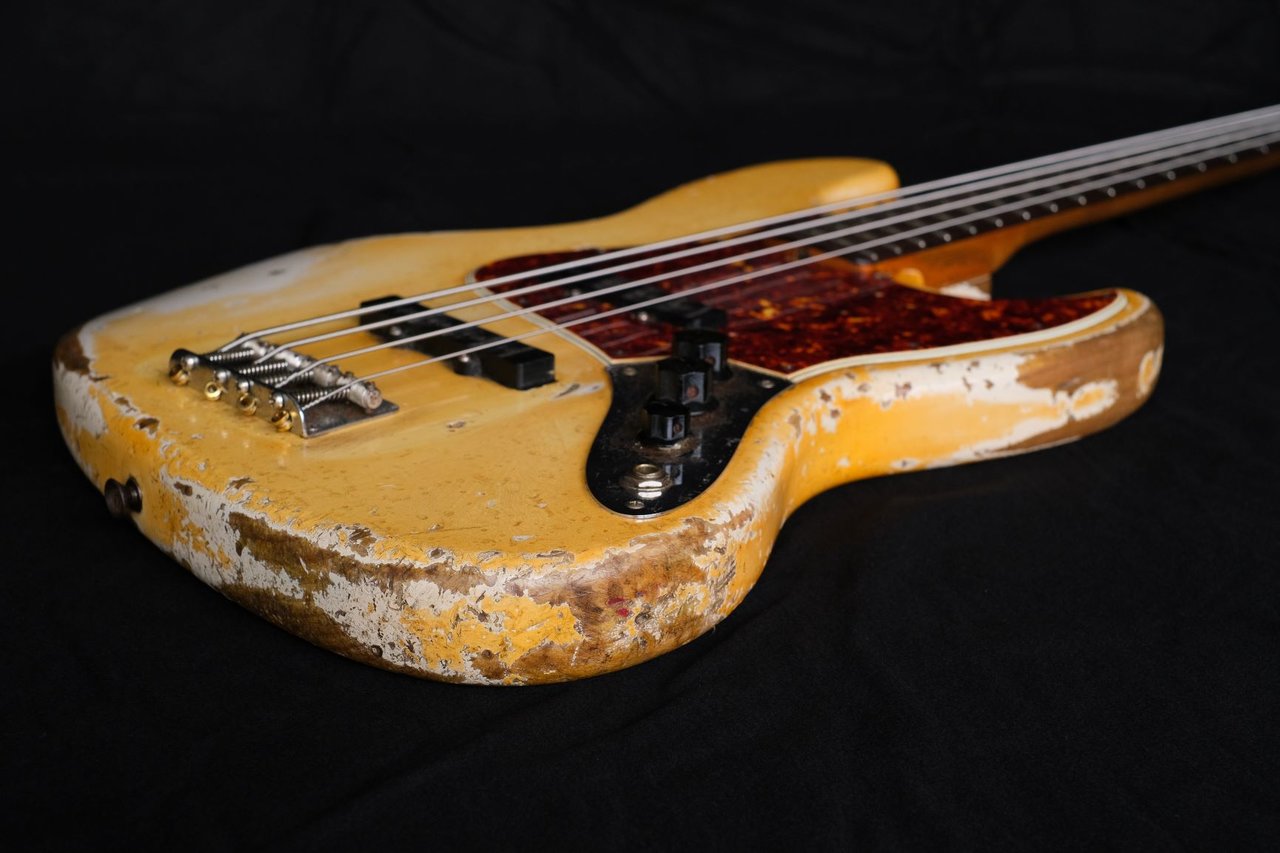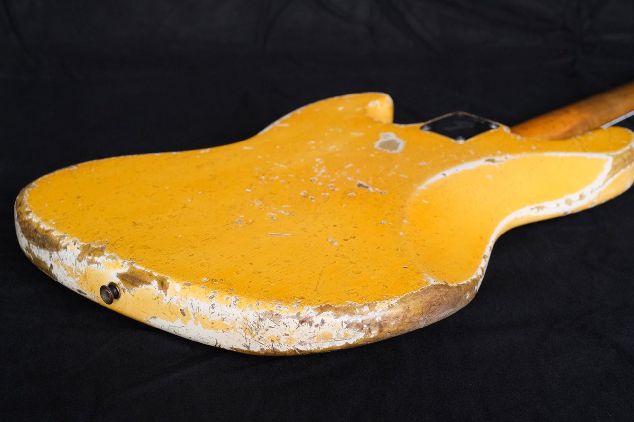 Ein Jazz Bass, der vom Erstbesitzer aus Irland über @grdIbrmpf zu mir kam. Baujahr zweite Hälfte 1965, daher schon mit Fender-eigenen Lollipop Tunern (rechtsdrehend). Er wurde neu bundert, ansonsten ist alles original. Der Bass wurde intensiv benutzt und tourte durch die ganze Welt, was man ihm nicht nur ansieht, sondern auch hört. Sowas Resonantes, so ein befreiter, ungehemmter, offener Ton wie bei diesem J ist einem noch nie begegnet. Höchstens noch bei einem roten Sechziger Precision, den ich auf einem früheren Treffen mal das Vergnügen hatte hören zu dürfen.