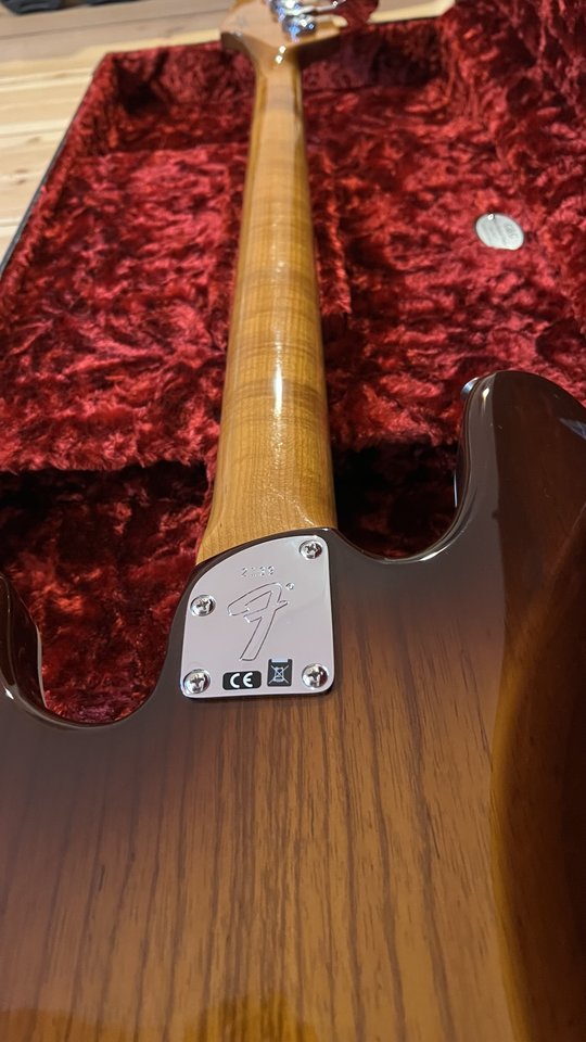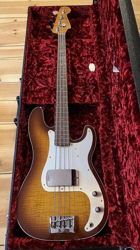 Das ist ein Modell aus dem Custom Shop von Fender. Wurde vorgestellt 2017, meiner ist Baujahr 2018. Der offizielle Name ist Artisan Flame Maple Postmodern Bass. Ist ein P-Bass mit J-Hals.