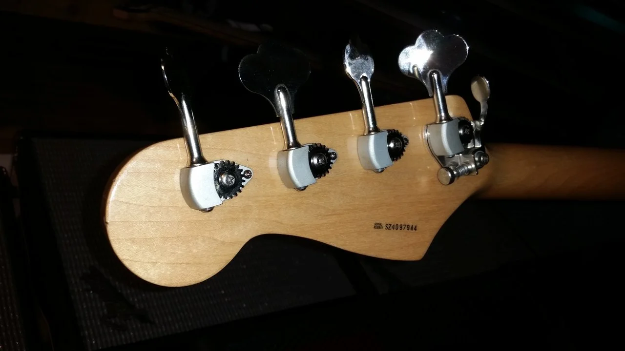 So wie es aussieht war ich irgendwann mal Erstbesitzer vom Body.So, ich hab auch einen „Neuen“. Ist eine Hochzeit aus einem 97er Squier Preci Hals mit 44,5mm Sattelbreite und von @Jaybert Schu ein gestrippter 50s Classic Body von 2011, PU, Pickguard und Elektronik sind aus einem 95er AS Preci. Klingen tut er ausgewogen kräftig mit einem schön dunklen Timbre, like it!